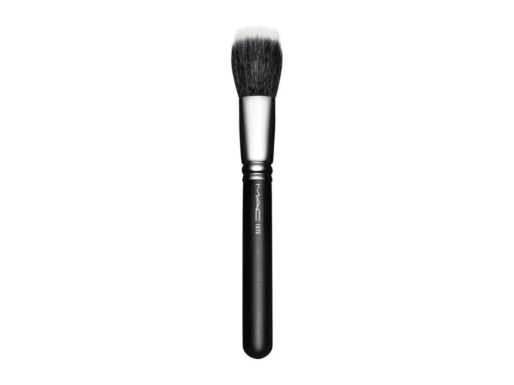 Pincel para pó e blush. M·A·C 187S Duo Fibre Face Brush espalha a maquiagem com leveza e uniformidade, sem deixar marcações.