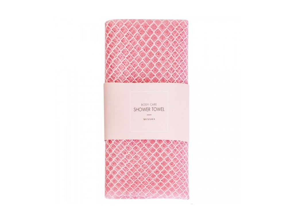 Toalha corporal com efeito esfoliante, Missha Shower Towel, massageia perfeitamente a pele, limpando-a das células mortas e melhorando a circulação sanguínea.