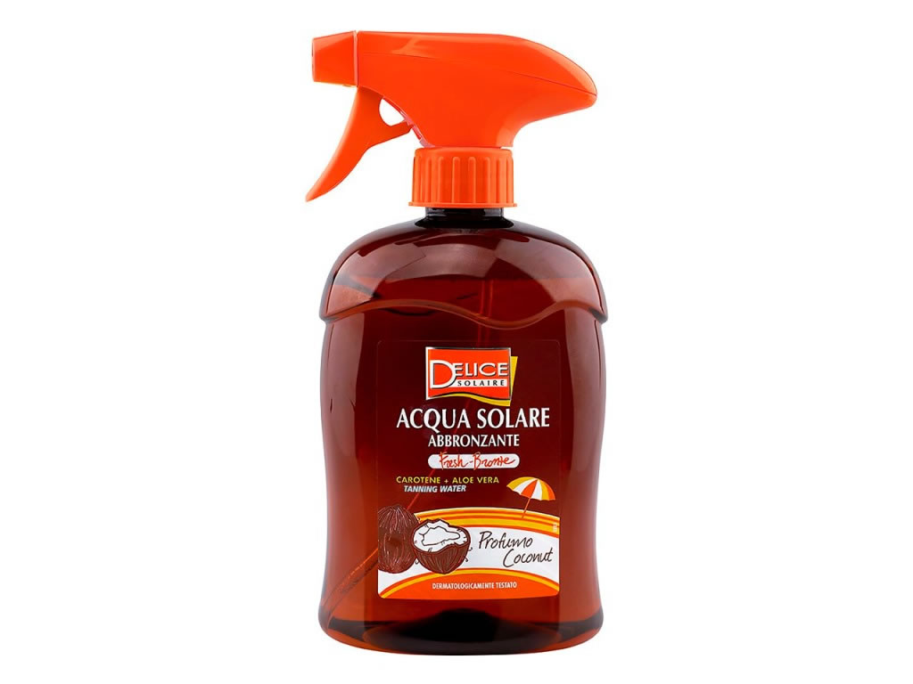 A Água Bronzeadora Acqua Solare Delice Solaire Bronzeador Coconut é um spray bronzeador inovador. Enriquecido com ingredientes naturais, como extrato de Aloe Vera e Chá Verde, conhecidos por suas propriedades hidratantes e calmantes, contém agentes bronzeadores que aceleram o bronzeado, ajudando a obter uma cor natural e uniforme. Sua textura leve e refrescante é absorvida rapidamente, deixando a pele suave e sedosa, sem sensação pegajosa.