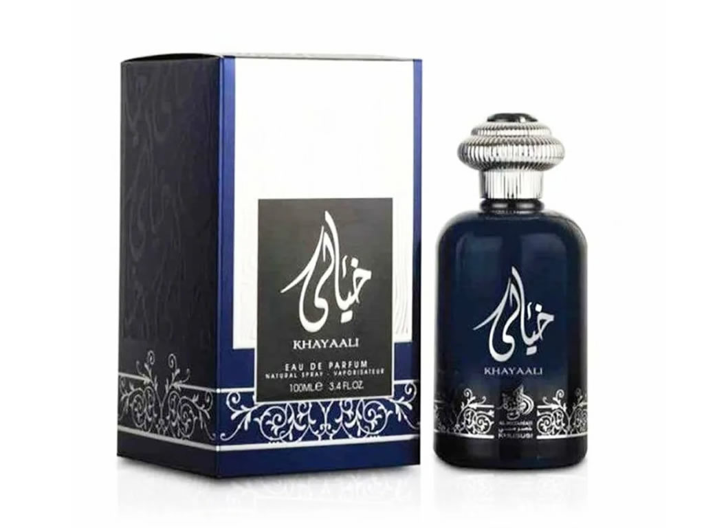 Khayaali de Al Wataniah é um perfume Aromático Especiado Compartilhável. Esta é uma nova fragrância. Khayaali foi lançada em 2023. As notas de topo são: Manjericão, Bergamota, Lavanda e Limão. As notas de coração são: Canela, Cravo-da-Índia, Gerânio e Maçã. As notas de fundo são: Ládano, Patchouli, Baunilha, Almíscar, Musgo de Carvalho e Cedro.