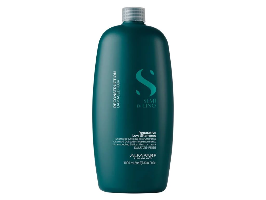 Shampoo sem sulfato para cabelos danificados. Alfaparf Semi Di Lino Reconstruction Low Shampoo limpa delicadamente enquanto repara a estrutura interna. Ideal para fios fragilizados em processos químicos, coloração ou desgastados no dia a dia.