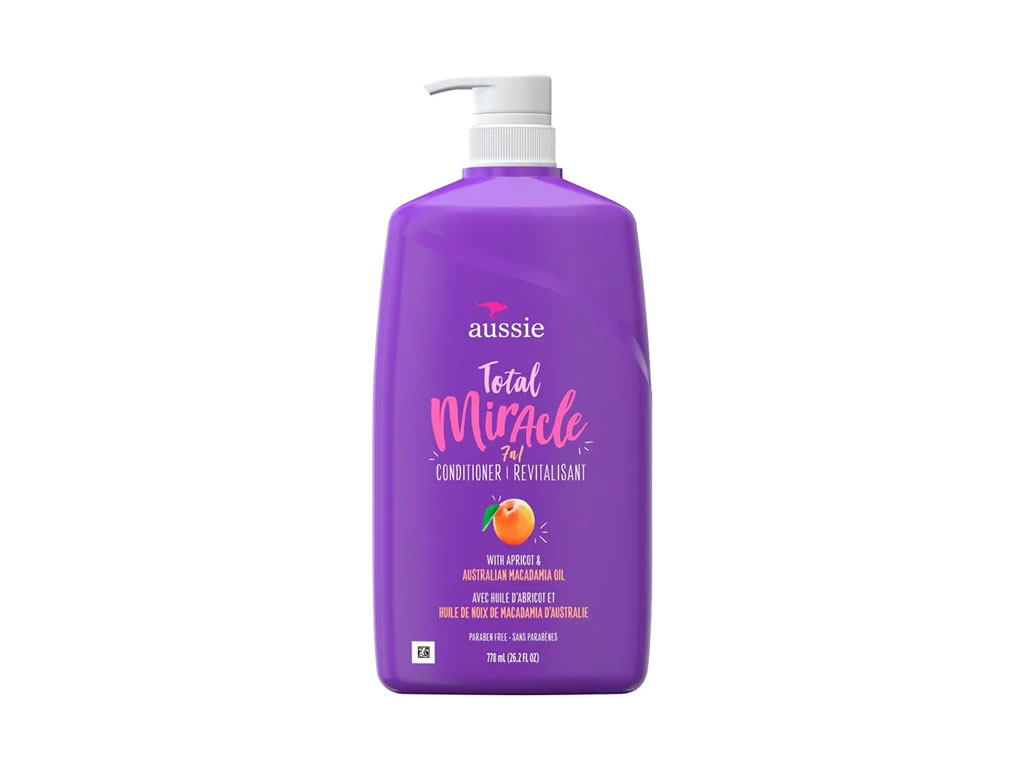 Condicionador Aussie Total Miracle 7 em 1 para cabelos secos ou danificados. É ideal para cabelos que necessitam de proteção e hidratação contra o ressecamento e pontas duplas.