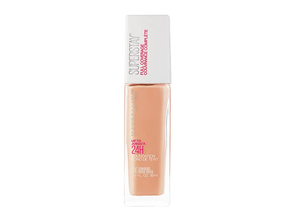 Base líquida. Maybelline Superstay Full Coverage proporciona duração de 24 horas e permanece intacta mesmo sobre condições de calor e umidade.