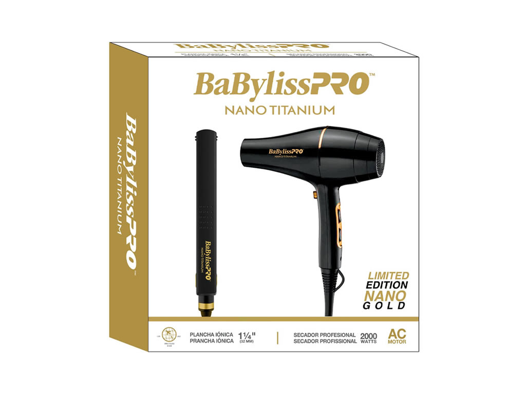 BABYLISS PRO LIMITED NANO TITANIUM GOLD SECADOR + PRANCHA - BIVOLT