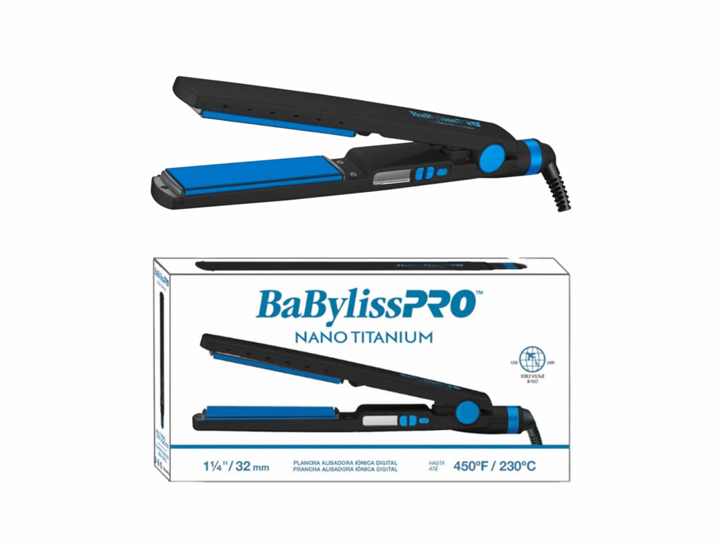O alisador de cabelo digital BaBylissPro Nano Titanium possui a tecnologia Nano Titanium para resultados super brilhantes.