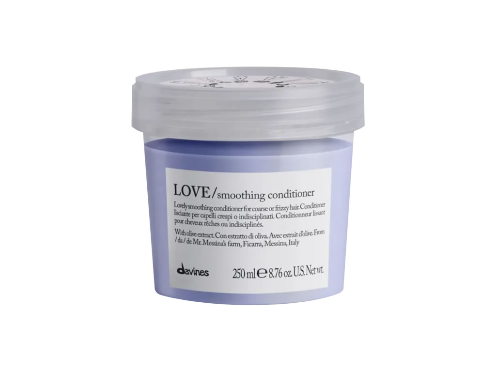 Condicionador para cabelos cacheados ou crespos. Davines Love Smoothing proporciona diminuição do frizz e volume dos fios.