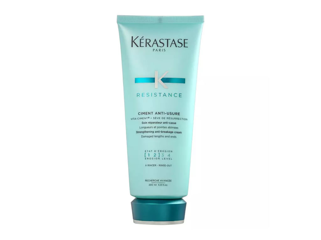 Condicionador de tratamento para cabelos danificados e finos. Kérastase Résistance Ciment Anti-Usure reconstrói profundamente e fortalece. Ele tem o poder de reduzir substancialmente a perda de matéria das fibras capilares causada por danos diários.