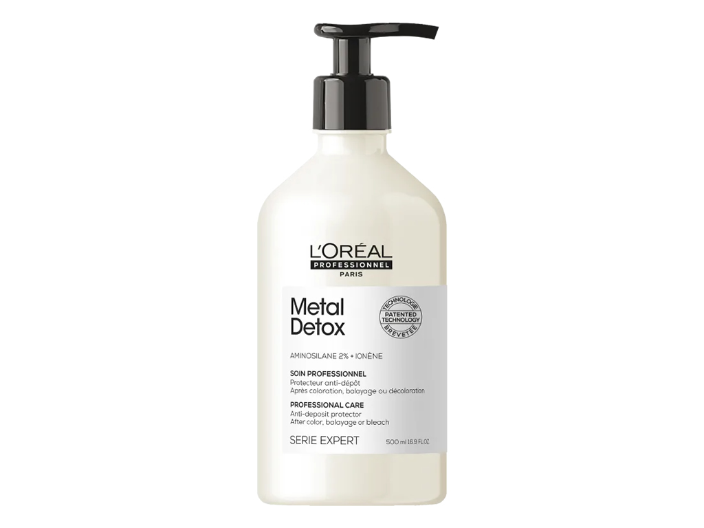 L'Oréal Professionnel Metal Detox Soin protege a fibra capilar de depósitos de partículas de metal após a coloração, mechas ou serviço de descoloração. Dessa forma, impede a ação dos metais, garantindo mais força, resistência e brilho aos fios e mantendo a cor radiante e duradoura.