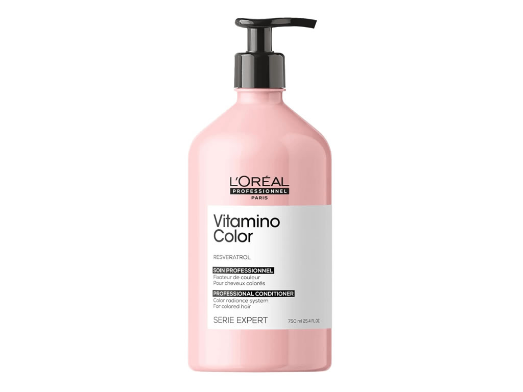 Condicionador para cabelos coloridos, em tamanho profissional. Desembaraça, enquanto sela os fios. L'Oréal Professionnel Vitamino Color A-OX protege os pigmentos de cor e o brilho do cabelo com coloração.