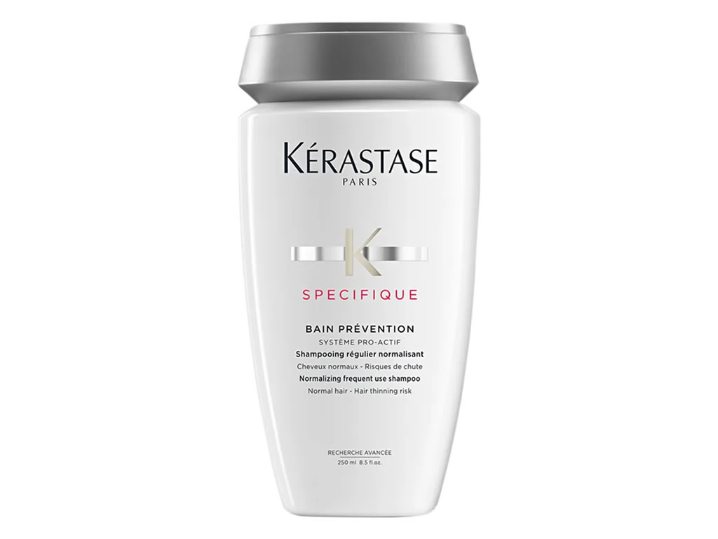 Shampoo antiqueda para cabelos com tendência à queda capilar. Kérastase Spécifique Bain Prévention previne a perda de fios e estimula a produção de novas fibras capilares.