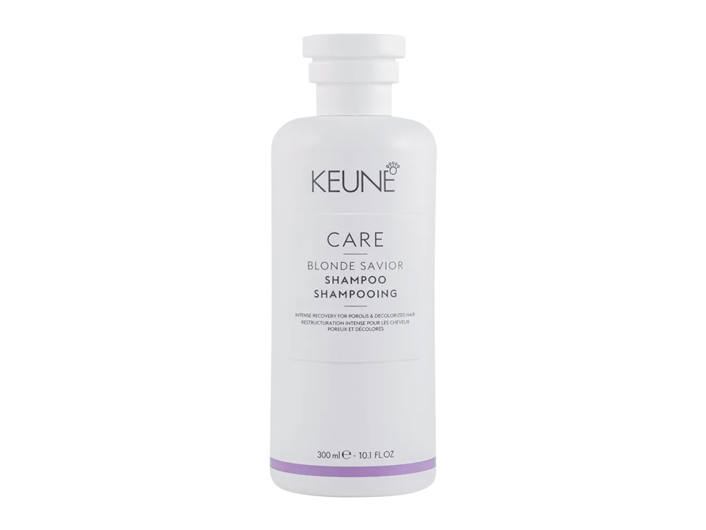 Shampoo para cabelos danificados e descoloridos. Keune Care Blonde Savior revitaliza e fortifica os cabelos, proporcionando hidratação imediata.