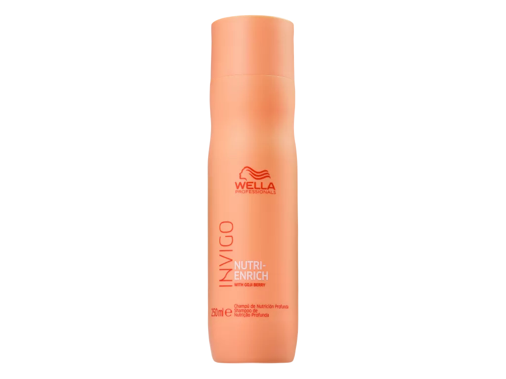 Shampoo para cabelos secos, ressecados ou quimicamente tratados. Wella Professionals Invigo Nutri-Enrich promove limpeza com nutrição instantânea.