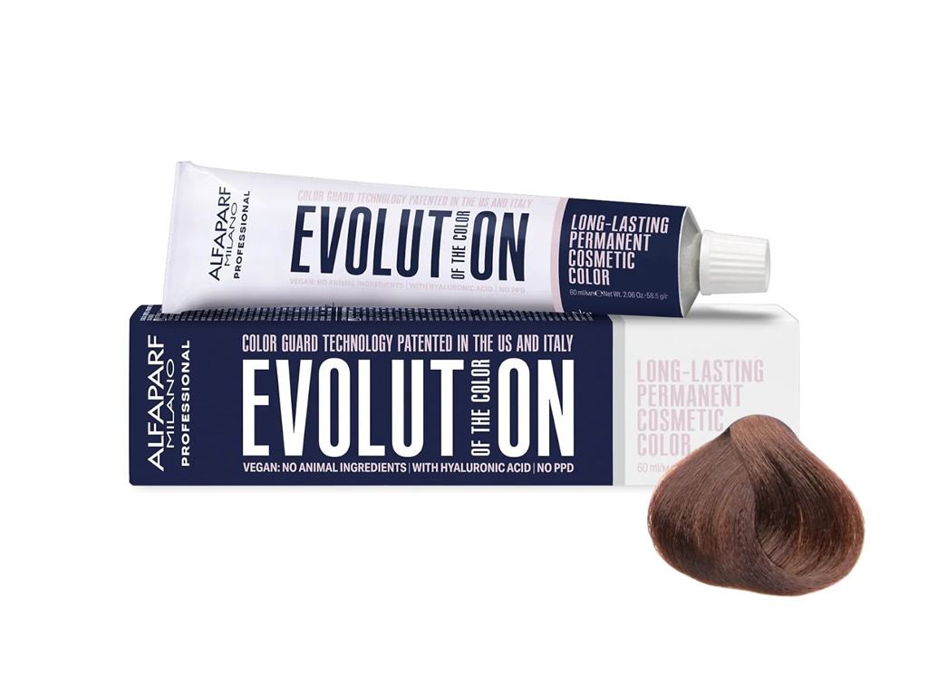 Coloração permanente em creme para todos os tipos de cabelo. Alfaparf Evolution Of The Color uniformiza e acentua a cor dos fios.Gracas a sua fórmula avançada enriquecida com ácido hialuronico e sem PPD, garante a perfeiçã...
