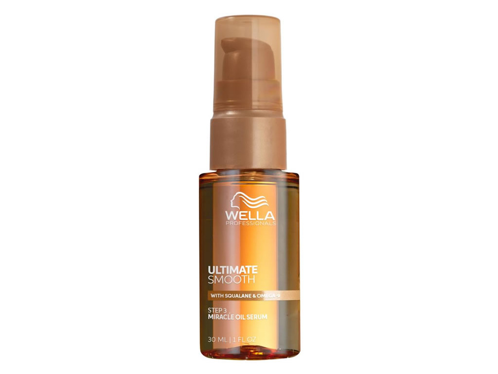 Wella Professionals Ultimate Smooth Miracle Oil Serum é um óleo capilar delicado (com textura de sérum) que nutre profundamente os cabelos de dentro para fora, deixando-os visivelmente mais lisos e brilhantes – nutrindo seus cabelos em 30 segundos com maciez que dura até 3 dias. Contém esqualano e ácidos graxos ômega-9.