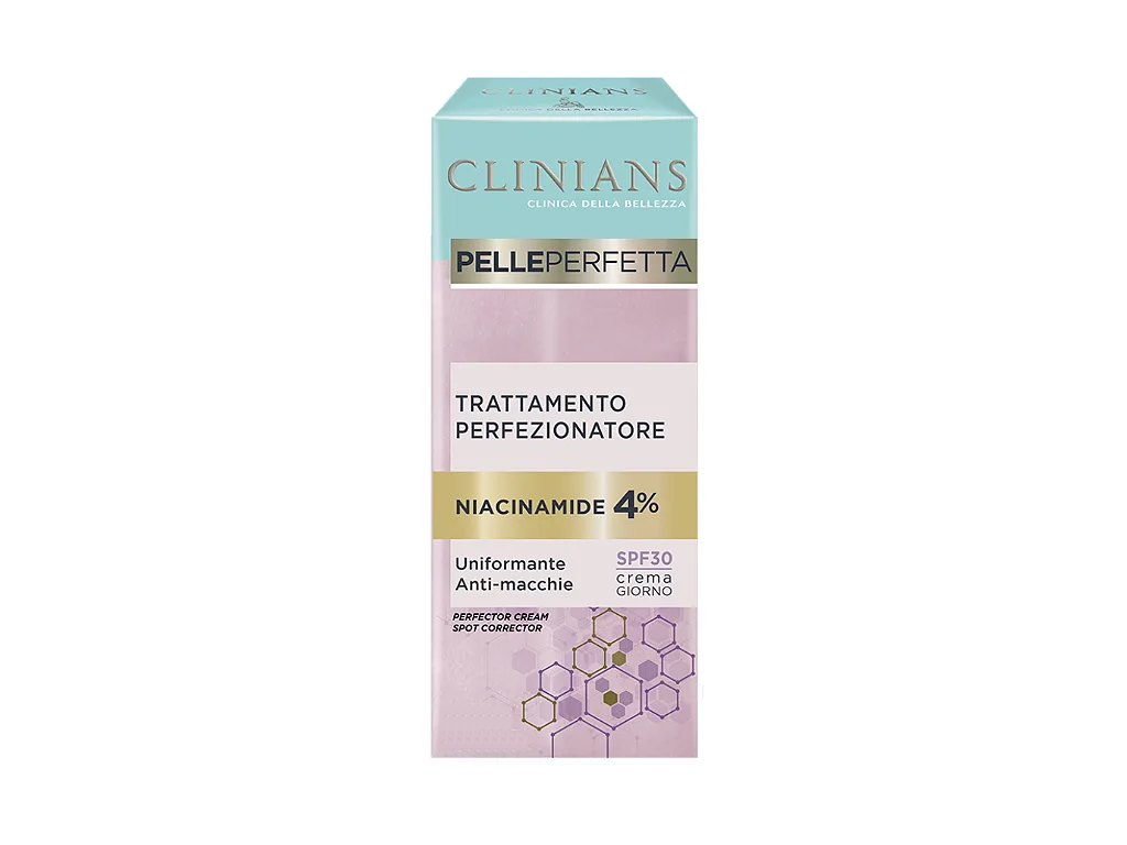 Creme redutor de marcas. Clinians Pelle Perfetta Niacinamida 4% FPS 30 proporciona tratamento para todos os tipos de pele, uniformiza a tonalidade e imperfeições cutâneas.