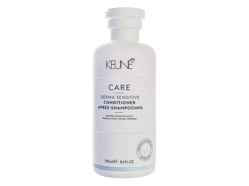 Condicionador para todos os tipos de cabelos, principalmente para quem tem couro cabeludo sensível. Keune Care Derma Sensitive condiciona e hidrata com efeito calmante e suavizante.