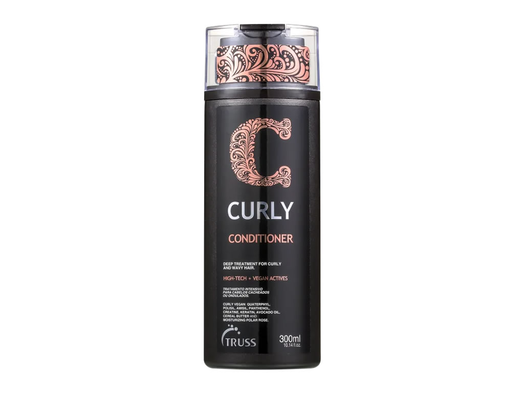 Condicionador para cabelos cacheados e ondulados. Truss Curly Condicionador desembaraça, hidrata e traz maciez, brilho e definição aos fios.