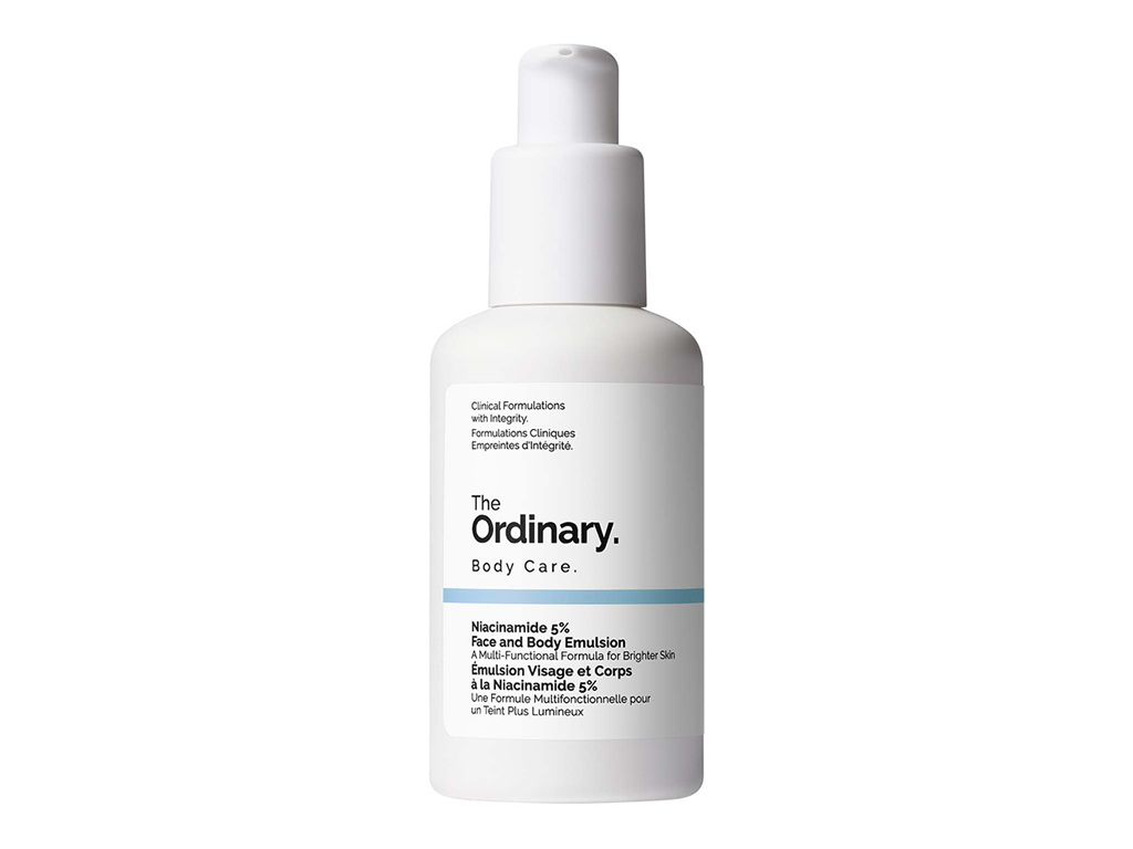 A emulsão facial e corporal de niacinamida 5% da The Ordinary é uma fórmula multifuncional que ajuda a atenuar a aparência de manchas escuras no rosto e no corpo. Testada em todos os tons de pele, ela atua na aparência de manchas escuras no rosto, pescoço, peito e braços para um tom mais uniforme no rosto e no corpo.