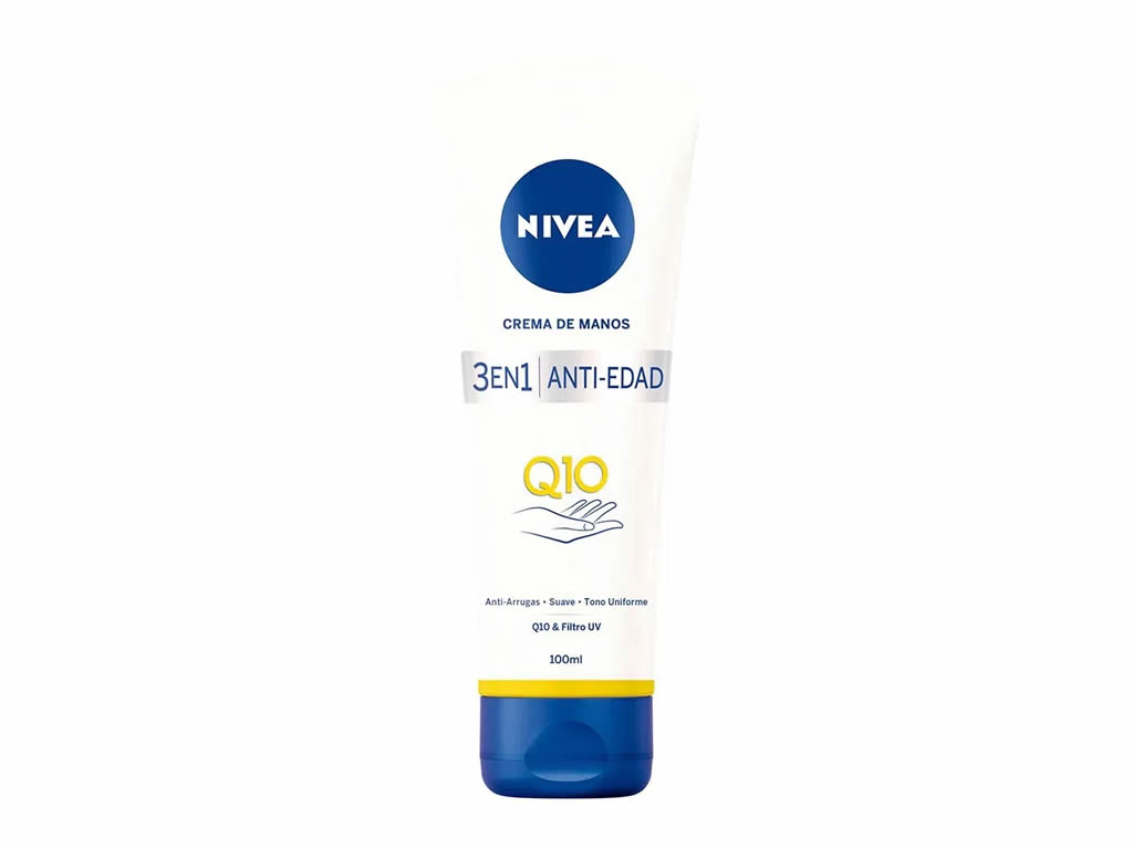 NIVEA Q10 PLUS Anti-Aging Hand Cream ajuda a prevenir e reduzir visivelmente os sinais prematuros de envelhecimento. Sua fórmula combina coenzima Q10 e Creatina, ingredientes que são potencializados para estimular o mecanismo de reparação das camadas mais profundas da pele, melhorar sua elasticidade, proporcionar maciez e prevenir o aparecimento de manchas solares. A pele ficará visivelmente mais lisa e firme. Além disso, cuida das cutículas com seu uso diário. É apropriado para todos os tipos de pele.
