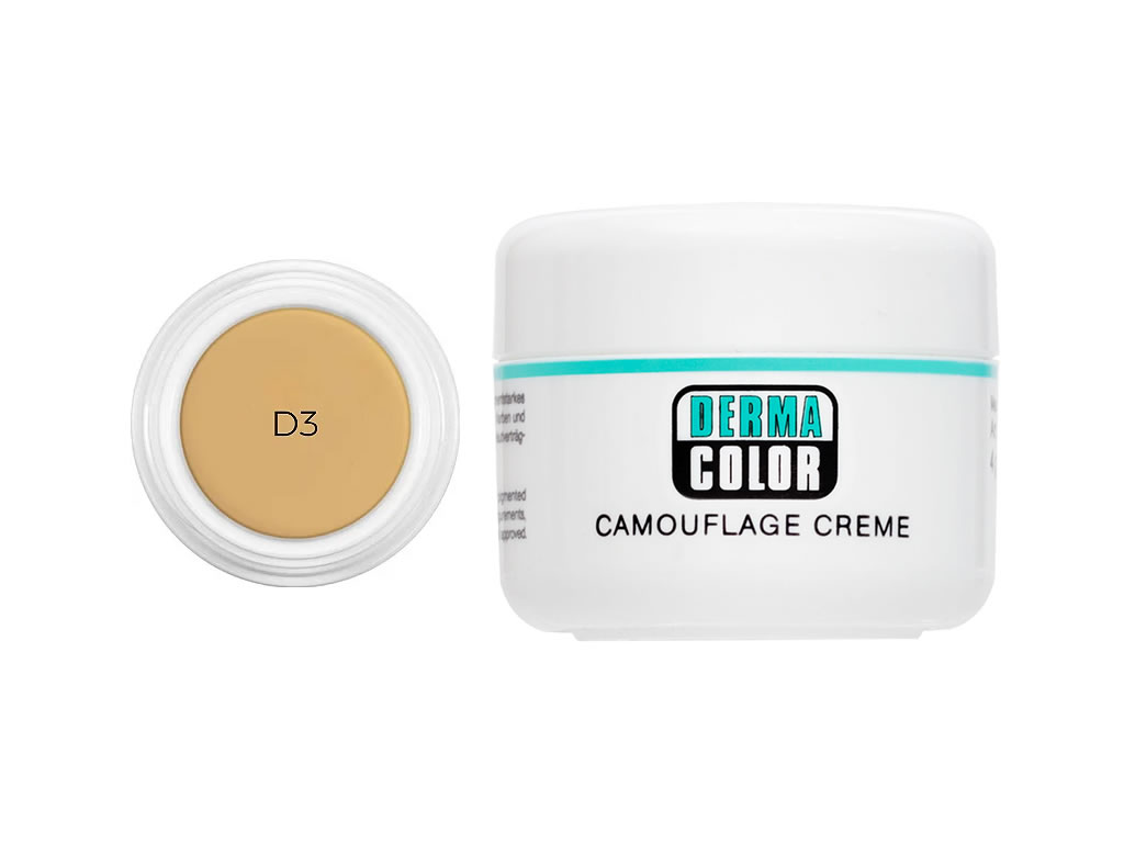 Dermacolor Camouflage Creme em embalagem prática redonda.É uma maquiagem especial altamente pigmentada desenhada para corrigir e cobrir desfigurações, descolorações e tatuagens na pele.É especialmente adequado para rosto e pescoço.Com o uso adequado, anormalidades na pele ...