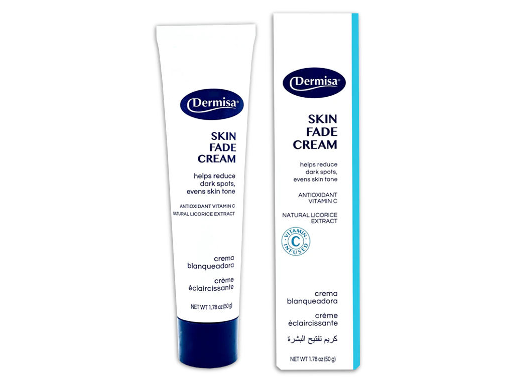 Dermisa Skin Fade Cream é uma fórmula leve e não oleosa projetada para ajudar a atenuar gradualmente a aparência de manchas escuras causadas pela exposição excessiva ao sol, envelhecimento, sardas, gravidez, pequenas cicatrizes e uso de pílulas anticoncepcionais. Este creme contém Vitamina C antioxidante para ajudar a combater os radicais livres, bem como Alcaçuz, Niacinamida e Emblica . Esta fórmula também possui hidratantes para ajudar a fornecer maciez, brilho e brilho. Pode ser usado sob a maquiagem.