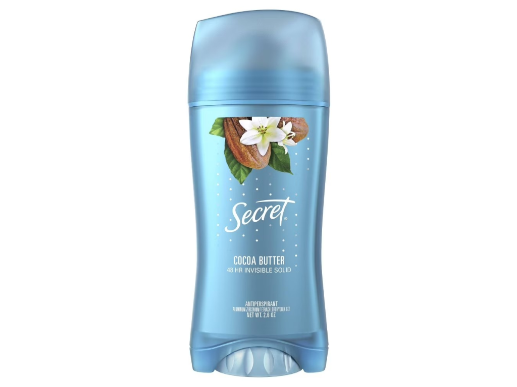 Secret Invisible Solid permanece seco e com uma aplicação suave e uniforme. Esta fórmula única apresenta tecnologia patenteada ativada pelo suor, que captura odores e libera fragrâncias. A tecnologia ativada pelo suor usa moléculas neutralizantes de odor para capturar o odor, bloqueá-lo e substituí-lo por um aroma fresco para mantê-lo com um cheiro limpo e fresco durante todo o dia.
