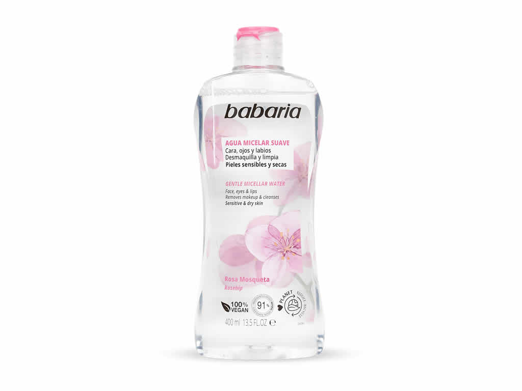 AGUA MICELAR BABARIA SUAVE ROSA MOSQUETA PELE SECA E SENSIVEL - 400ML