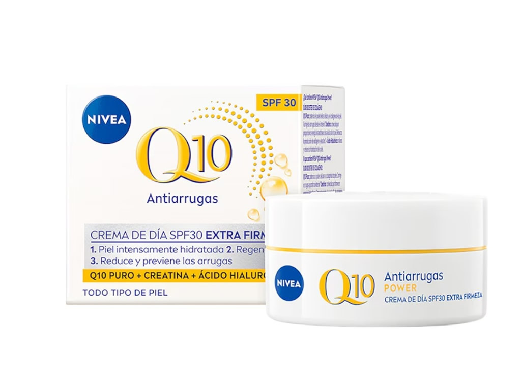 O Creme Anti-idade NIVEA Q10 Plus Dia FPS30 sua fórmula protege contra os nocivos raios solares e contém a exclusiva tecnologia MaxCreatina Ativa e Q10, que diminui os sinais da idade, deixando a pele com aparência mais jovem em apenas 4 semanas. Sua textura leve, não comedogênica, tem toque seco e promove hidratação durante o dia todo.