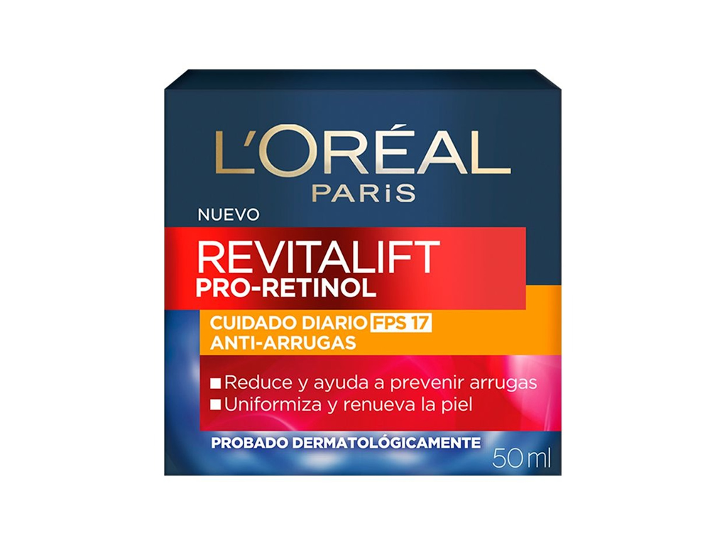 Revitalift Pro Retinol Cuidado Diurno FPS 17 Antirrugas de L’Oréal Paris é um creme facial de uso diurno e diário com o ativo dermatológico Pro-Retinol, reconhecido por corrigir rugas, renovar a pele e uniformizar a tonalidade, muito recomendado por dermatologistas.