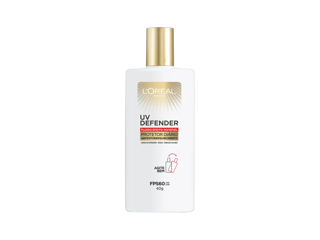 Protetor solar facial para todos os tipos de pele. L'Oréal Paris UV Defender Fluido FPS 60 combina alta proteção solar com ação redutora de linhas.O Protetor Solar L'Oréal Paris UV Defender Fluido FPS 60 é o novo protetor ...