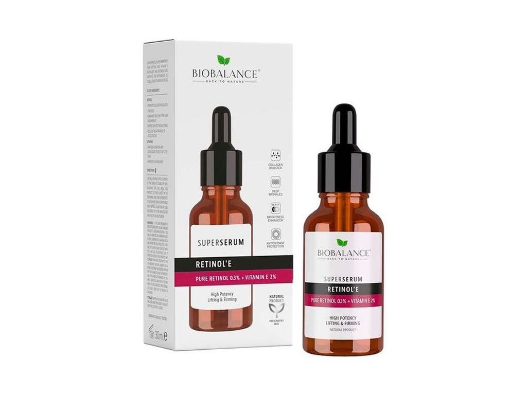 Bio Balance Retinol Super Serum é um super sérum concentrado com Retinol e Vitamina E que revitaliza a pele durante a noite e melhora a aparência dos sinais visíveis de envelhecimento e poros.