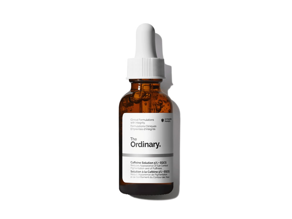 Esta fórmula de textura leve contém uma concentração extremamente alta de 5% de cafeína, suplementada com Epigalocatequina Galatil Glucosídeo (EGCG) altamente purificado de folhas de chá verde. Estudos independentes mostraram que o uso tópico de cafeína e EGCG pode ajudar a reduzir a aparência de inchaço e olheiras no contorno dos olhos. Estudos adicionais mostraram que a cafeína também pode reduzir o aparecimento de celulite.