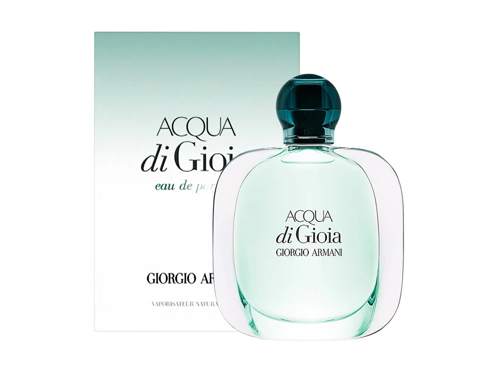 Com suas linhas curvas, inspiradas pelas formas da natureza, Giorgio Armani criou o frasco do perfume feminina Acqua Di Gioia que combinando a idéia das ondas do mar e do corpo de uma mulher em uma única gora de vidro espesso e transparente.