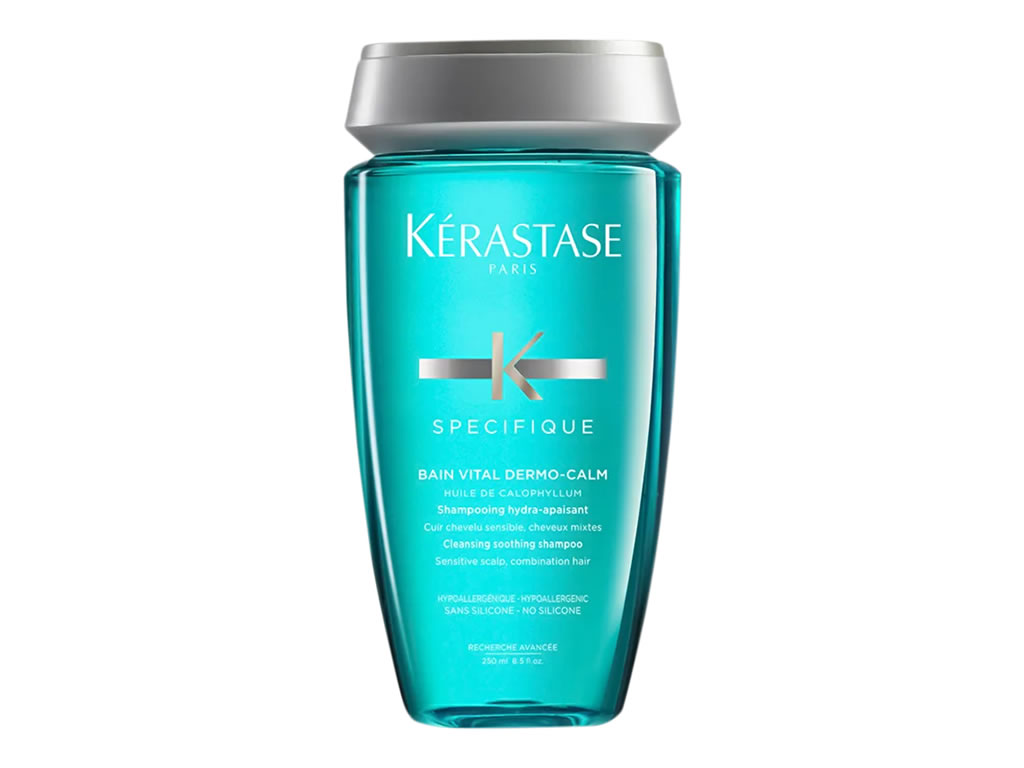 Shampoo calmante para o couro cabeludo sensível e cabelos mistos. Kérastase Spécifique Bain Vital Dermo-Calm acalma, elimina impurezas e nutre o couro cabeludo com leveza.