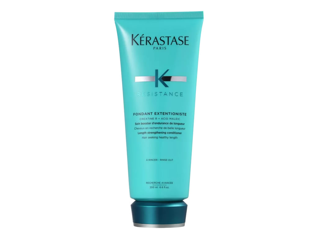 Condicionador para cabelos finos danificados e sem crescimento. Kérastase Résistance Fondant Extentioniste fortalece a estrutura e desembaraça. sem quebrar. Sua fórmula ainda resgata a flexibilidade e o toque sedoso.
