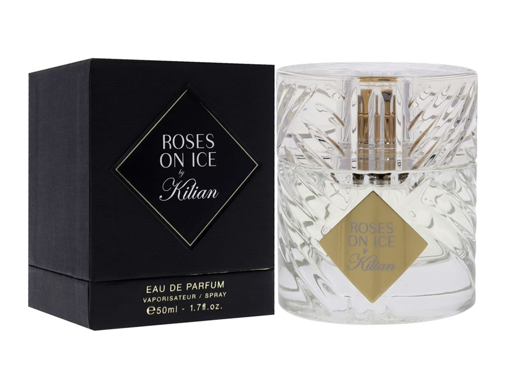 A Eau De Parfum Roses on Ice abre com o frescor do pepino e bagas de zimbro, criando uma sensação gelada arredondada em um acorde voluptuoso de rosa centifolia . Fundo seco de sândalo e almíscar, e o perfume expressa o caráter acentuado, mas profundamente infundido, do gin consumido em seu ideal. Esta fragrância faz parte da coleção The Liquors. Kilian Hennessy queria homenagear sua herança como herdeiro da renomada família francesa de conhaques.