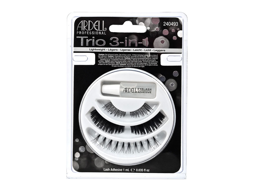O pacote Ardell trio (Cílios Ardell trio 3 em 1) inclui tudo o que é necessário para obter cílios exuberantes em apenas alguns minutos.