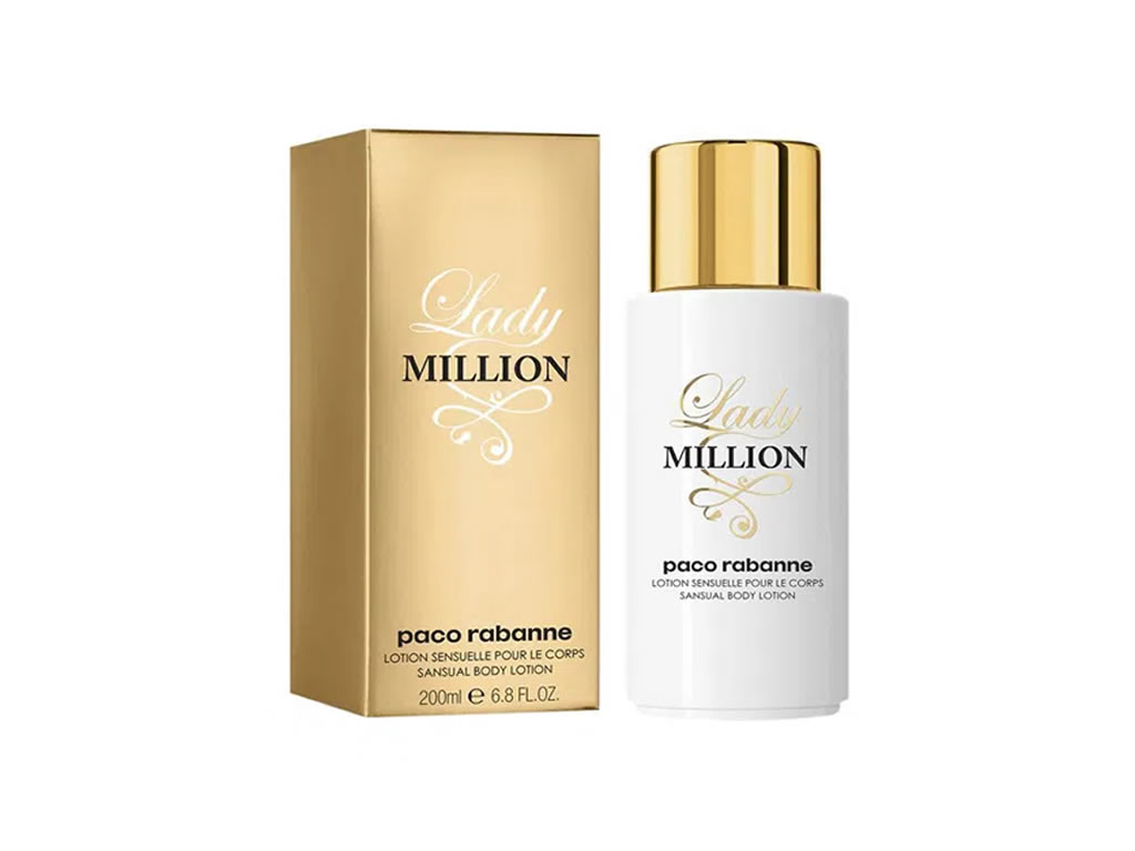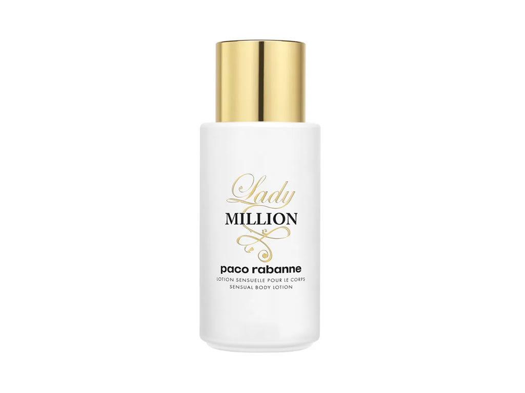 Loção corporal feminina. Lady Million Body Lotion possui a mesma fragrância do perfume, numa fórmula rica em Manteiga de Karité. Deixa a sua pele macia e perfumada.Lady Million de Paco Rabanne é uma essência luxuosa, criada ...