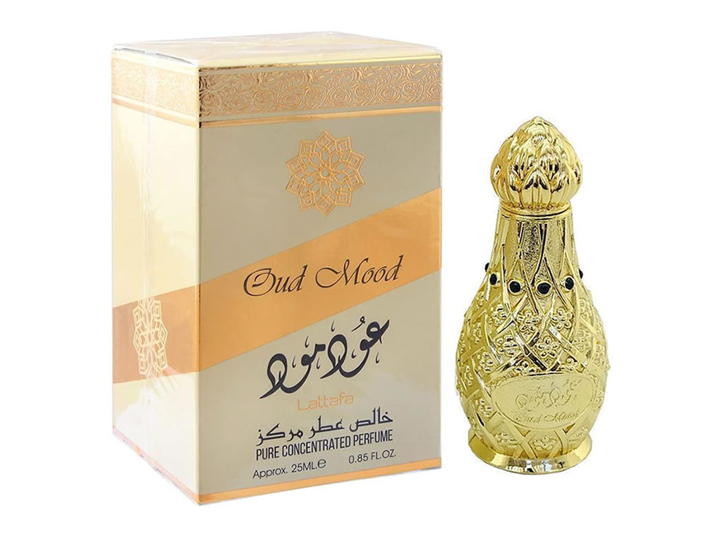 Oud Mood Concentrated Perfume Oil / Attar da Lattafa tem um aroma poderoso com notas cítricas, amadeiradas, florais e orientais. Se você está procurando um perfume árabe rico e profundo, é o perfume perfeito para homens e mulheres em seu cheiro e aparência.