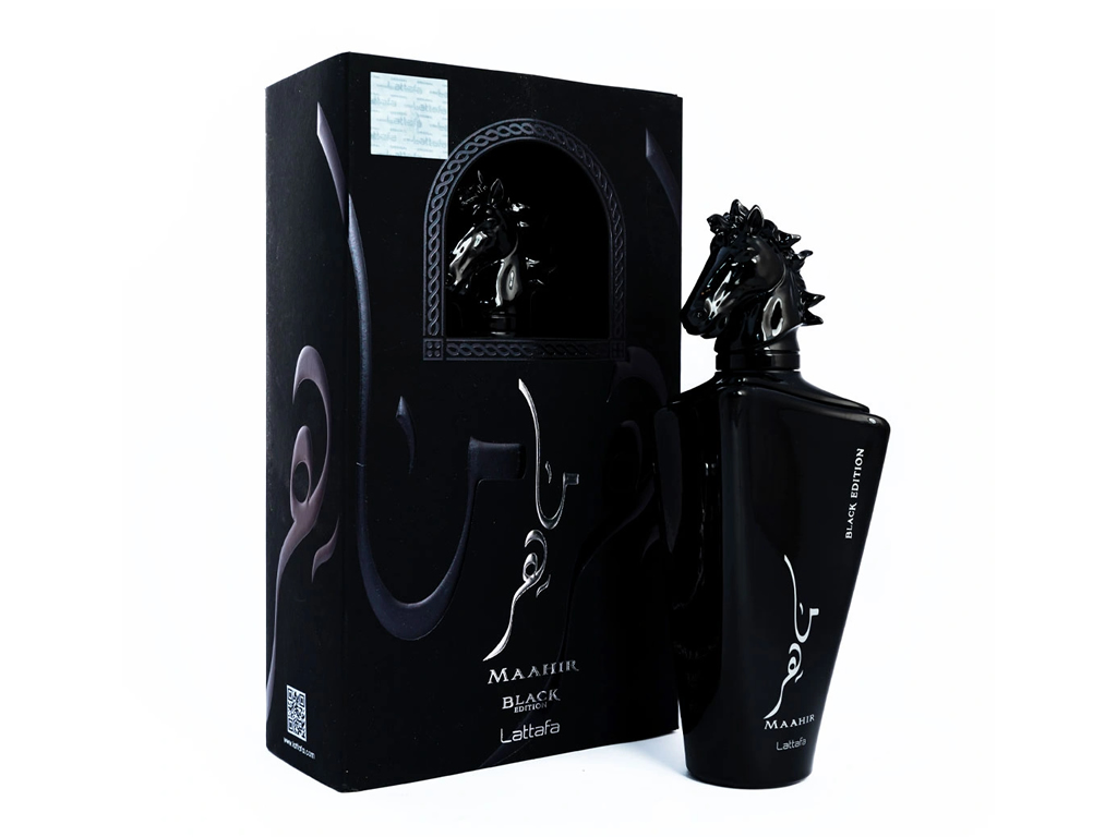 Lattafa Maahir Black é um perfume Âmbar Especiado Unisex.