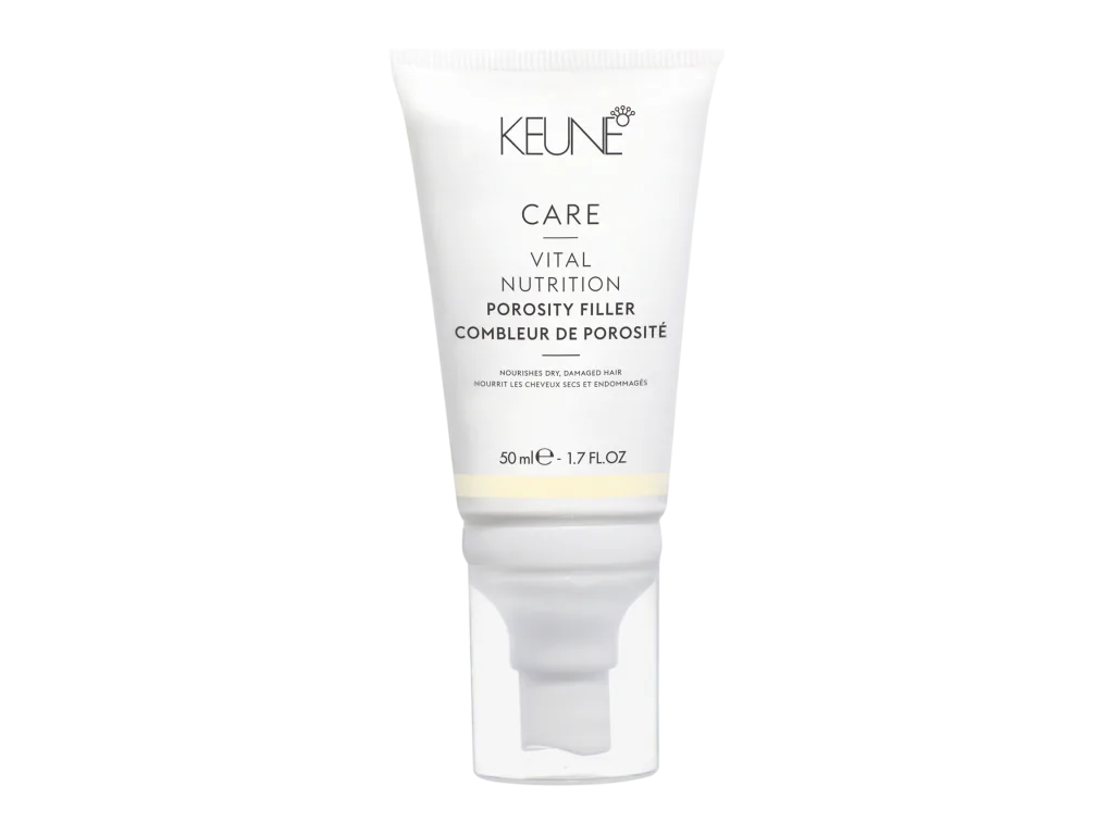 Leave-in fortalecedor de fibra capilar, repara porosidades e revitaliza o cabelo danificado. Keune Care Vital Nutrition Porosity Filler encorpa e dá brilho aos fios secos.