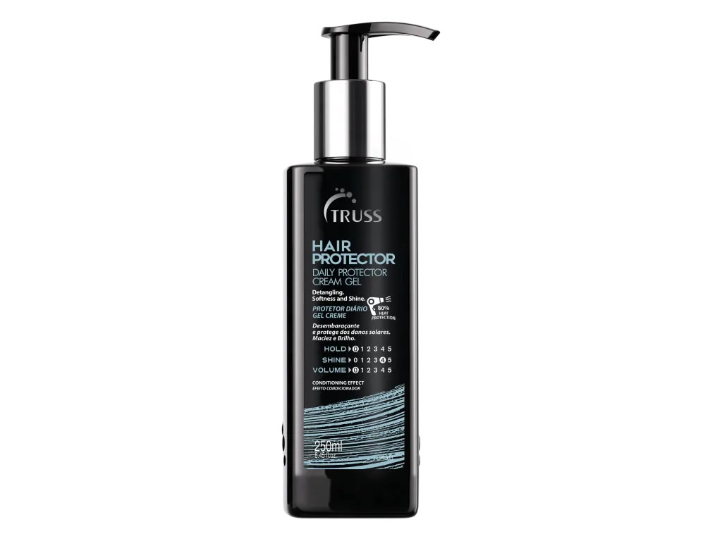 Leave-in indicado para todos os tipos de cabelos. Truss Protector desembaraça e protege dos raios UV, calor do secador e dos danos mecânicos causados pela escova.