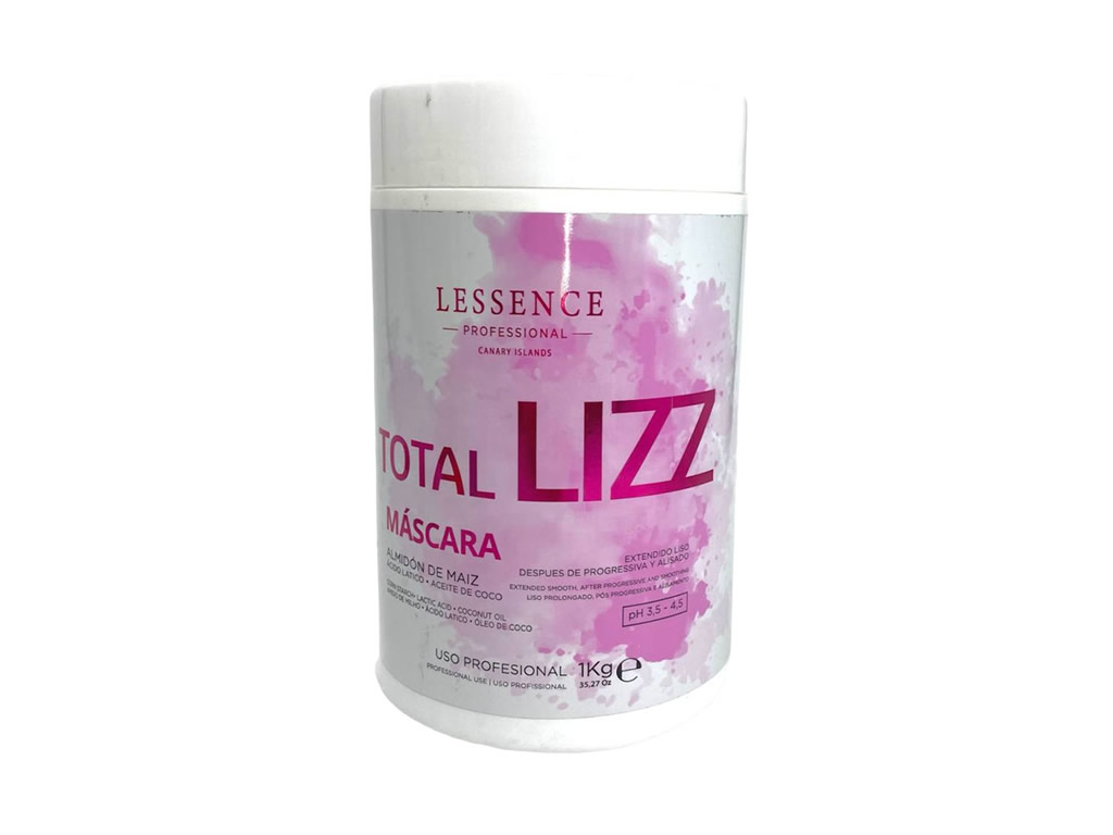 Promove um efeito liso total com amido de milho, ácido lático e óleo de coco, que faz com que o Total Liss repare e fortaleça toda a região danificada do cabelo.
