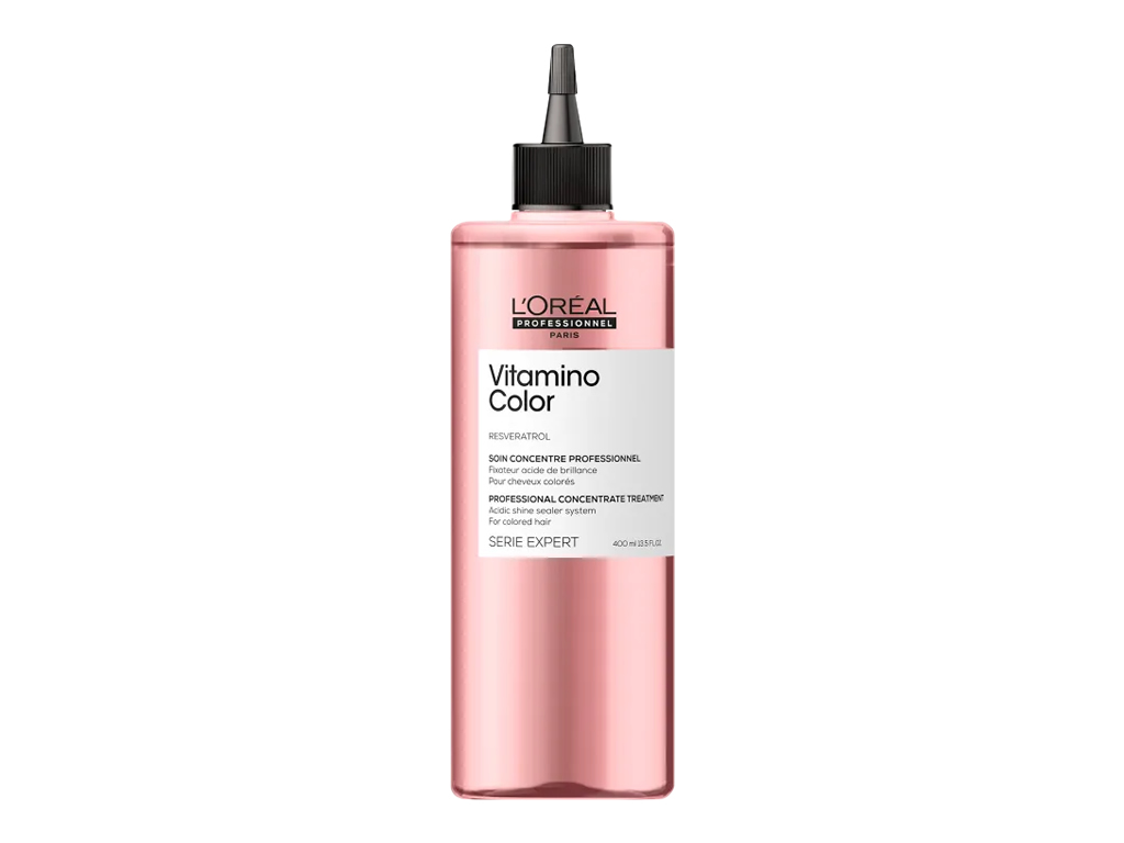 Tratamento concentrado para cabelos coloridos ou com mechas. L'Oréal Professionnel Vitamino Color Concentrate Treatment é uma loção utilizada para regular o pH e selar a fibra capilar instantaneamente, graças ao seu pH 4,5.