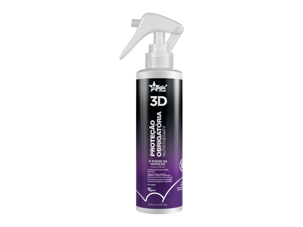 Modo de Usar: Aplicar o Proteção Obrigatória 3D NutriTherapy no cabelo úmido ou a seco borrifando a 20cm de distância ou aplique nas mãos e distribua uniformemente do comprimento as pontas. Sem enxague! Finalize como desejar.