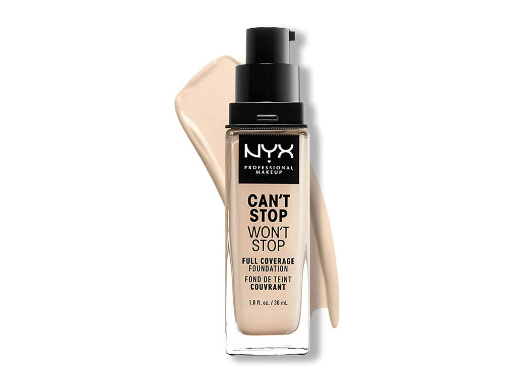 Leve, à prova d'água e altamente pigmentada, a NYX Professional Makeup Can't Stop Won't Stop Full Coverage Foundation é uma base líquida à prova d'água de longa duração que vem em uma ampla gama de tons lisonjeiros que não transferem.
