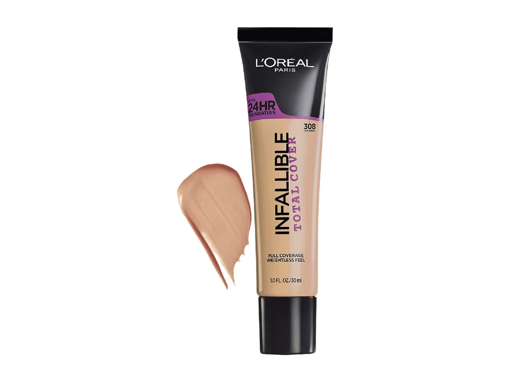Infallible Total Cover Foundation combina instantaneamente para cobrir manchas escuras, manchas, cicatrizes e hiperpigmentação para uma tez impecável.
