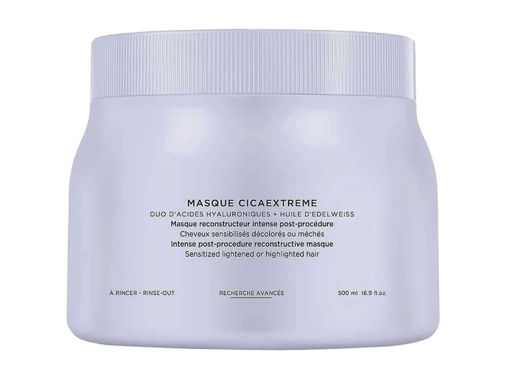 Kérastase Blond Absolu Masque Cicaextreme traz fórmula enriquecida com duo de ácido hialurônico e óleo de edelweiss, que proporcionam um tratamento profundo para reconstruir o cabelo após a descoloração, tornando a fibra capilar mais uniforme e saudável.