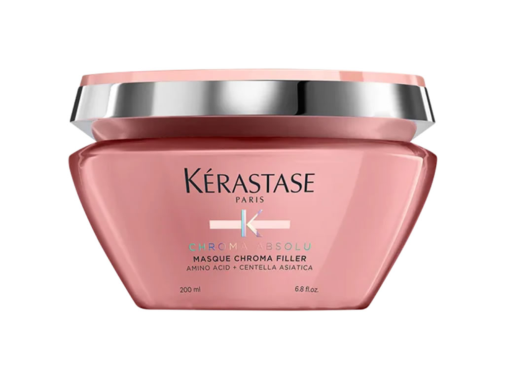 Máscara para cabelos com coloração, sensibilizados ou danificados, indicado para fios médios a grossos. Kérastase Chroma Absolu Filler oferece hidratação profunda e reduz o efeito frizz.