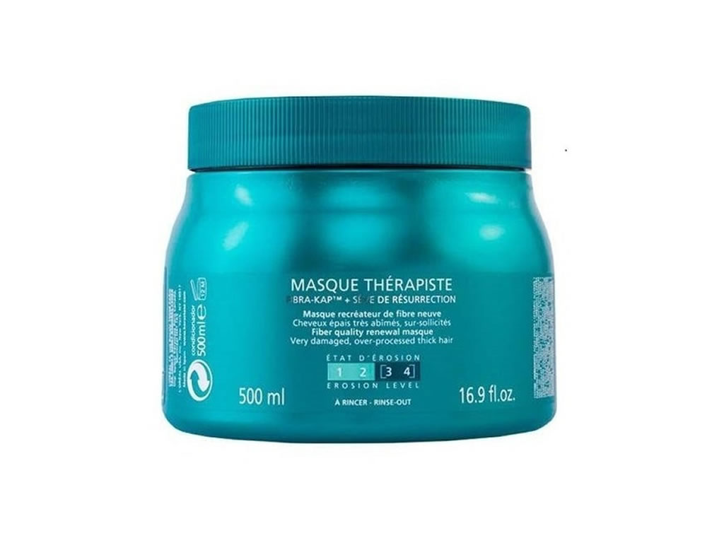 Máscara reconstrutora para cabelos superprocessados, com danos profundos causados por químicas sucessivas. Kérastase Résistance Thérapiste renova a qualidade dos fios desde seu interior. Reconstrói as fibras que sofrem processos agressivos químicos ou mecânicos e ficam sensibilizados.